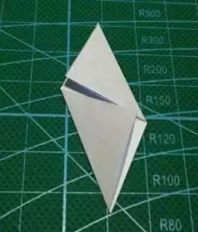 5. 折出飞镖形状:将彩纸沿着对折线再次对折,使得两个飞镖形状对齐,然后展开。